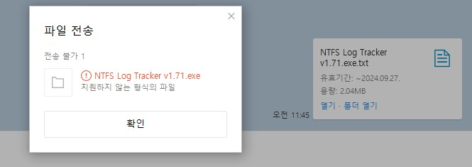 하지만 파일의 확장자를 바꾸어주면 전송할 수 있습니다.